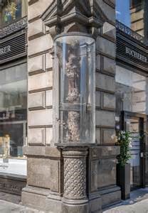 You don’t have to go far to find oddities and feel yourself smiling and musing, ‘Only in Vienna. ..’ – a familiar refrain uttered by locals and regular visitors alike. Take a walk up Vienna’s most fashionable street – Kärntnerstrasse – and you will arrive at St. Stephen’s Square (Stefansplatz) right by the magnificent cathedral. There, on the corner of Graben, you will see an extraordinary sight. A seven foot tree trunk, encased in glass and embedded with hundreds of nails, bound in iron, with a padlock. It is known as Stock im Eisen (staff in iron).